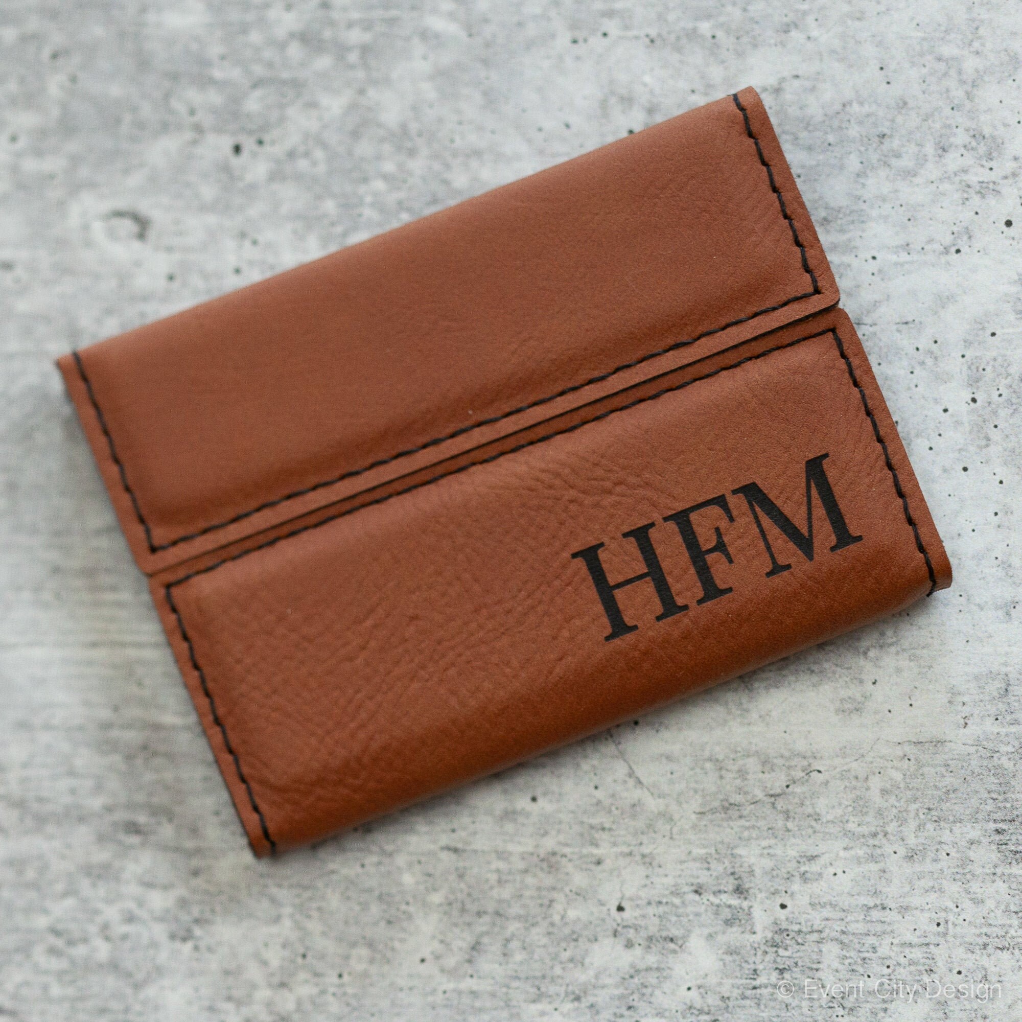 Classy office supplies for men and women. This personalizable matte stainless steel case keeps your business cards in proper form. Just type what you would like and choose a font! Personalized tan leather toiletry bag. Engraved business card holders and cases are ideal for employee recognition awards, team building gifts and corporate gifts. They are unique business gifts for men or women and can be personalized free of charge. All of our custom card holders are. 5% coupon applied at checkout. Personalized monogram card cases with letters are a distinctive way to stand out from the crowd. Personalized business card holder, leather bifold credit card case, customized business card holders with embossed initials, slim card case. 5.25 h x 4.25 w; This folding leather card holder gets down to business. 3 h x 4.5 w;